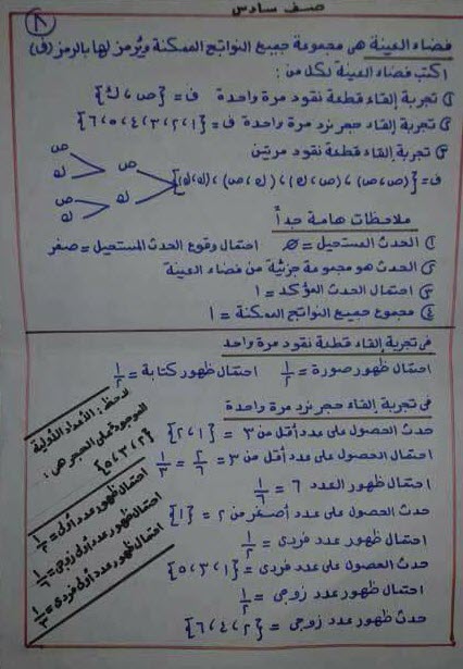 مجموعة أوراق عمل لمادة الرياضيات للصف السادس الفصل الثاني