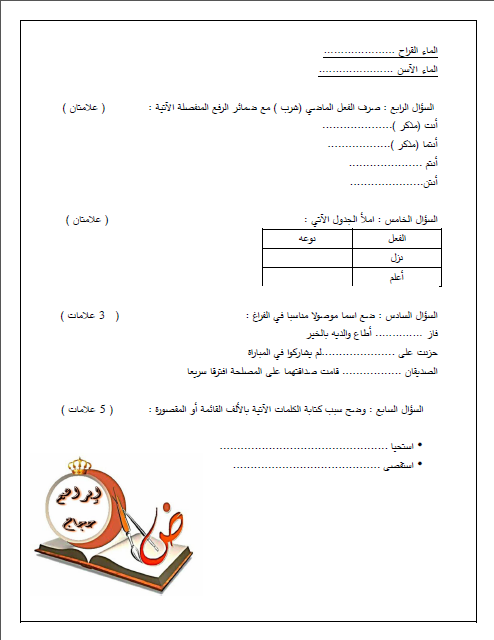 بالصور اختبار الشهر الثاني لمادة اللغة العربية الصف السادس الفصل الثاني نموذج 9