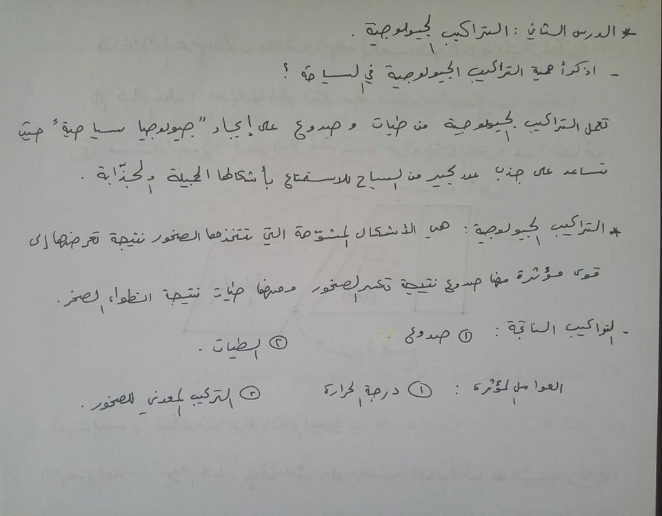 بالصور تلخيص وشرح الوحدة السابعة الفصل الاول درس التراكيب الجيولوجيه لمادة العلوم الصف الثامن الفصل الثاني 2018
