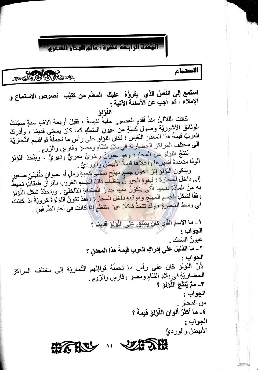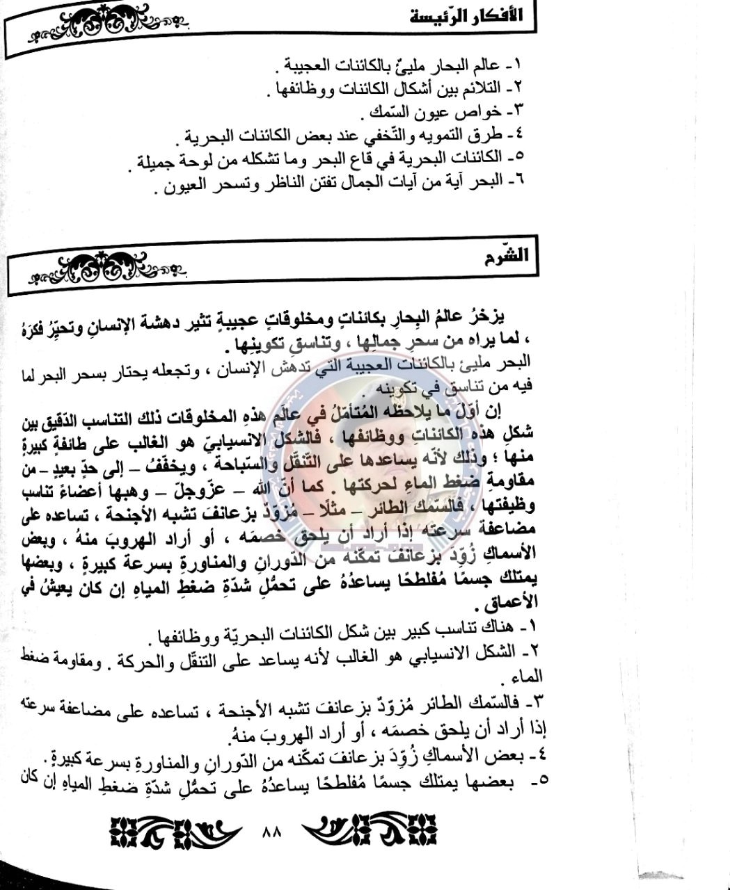 بالصورشرح وأفكار ومعاني درس رحلة في عالم البحار لمادة اللغة العربية للصف الثامن الفصل الثاني