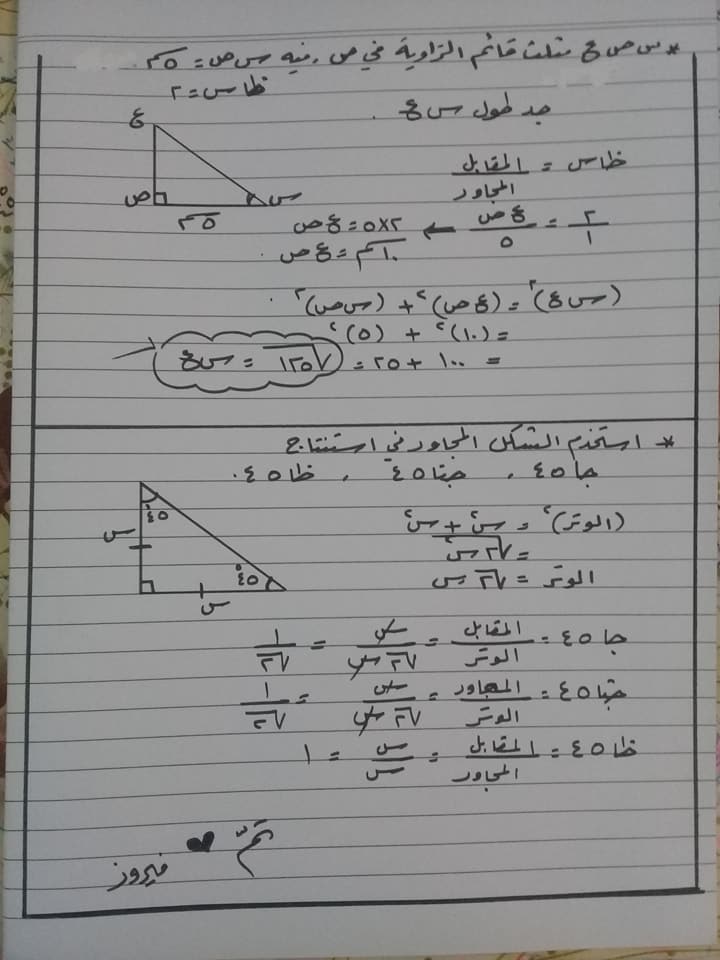 بالصور :. شرح جيب وجيب تمام وظل الزاوية الحادة لمادة الرياضيات للصف التاسع الفصل الثاني