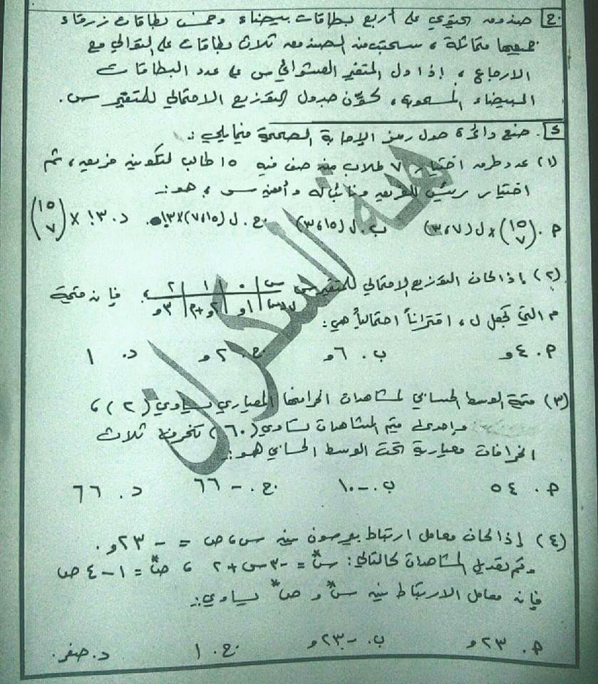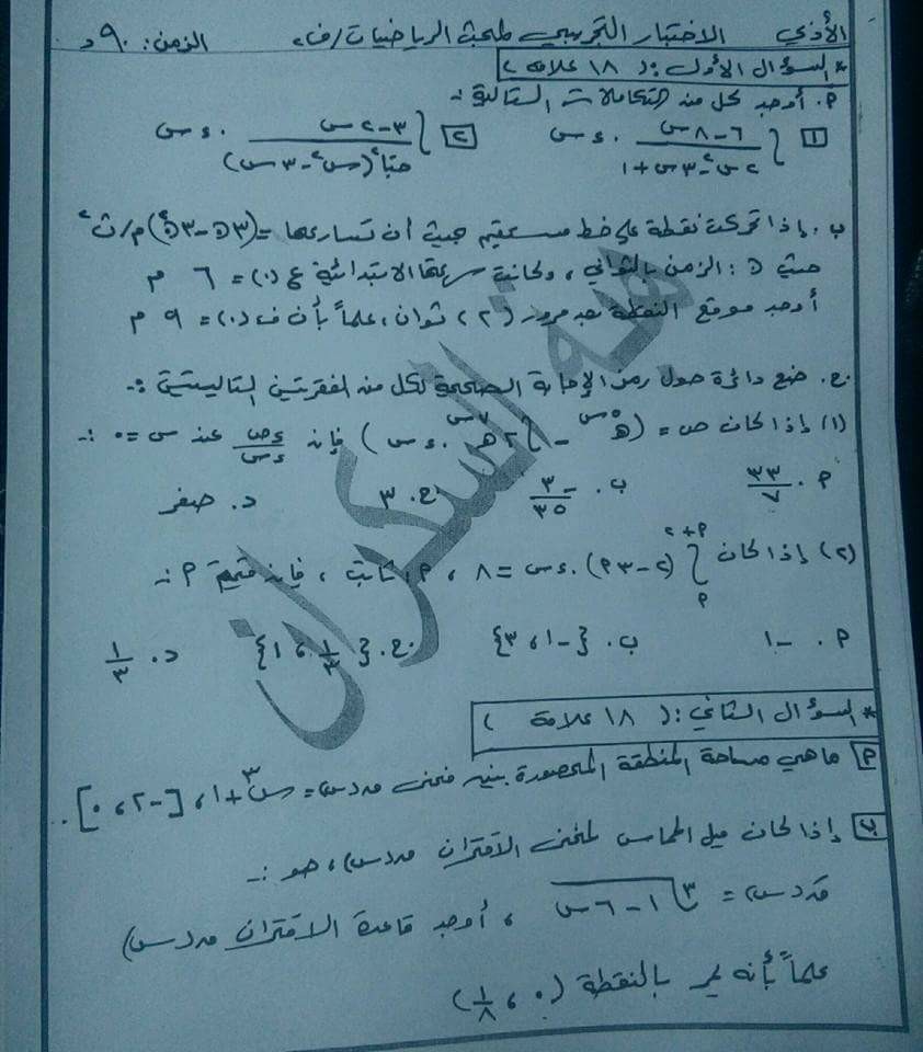 التوجيهي :امتحان تجريبي لمادة الرياضيات للفرع الأدبي الفصل الثاني 2018