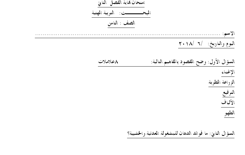 نموذج -1- Word قابل للتعديل الاختبار النهائي لمادة التربية المهنية الصف الثامن الفصل الثاني