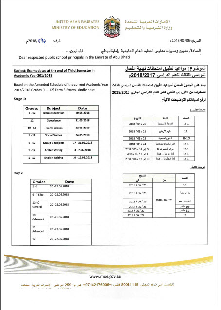 مواعيد تطبيق امتحانات نهاية الفصل الدراسي الثالث للعام الدراسي 2017-2018م