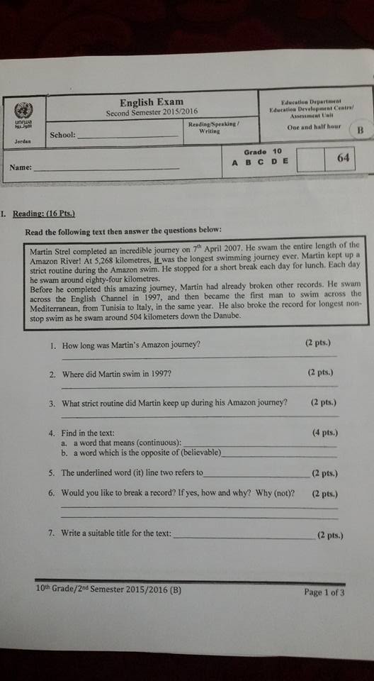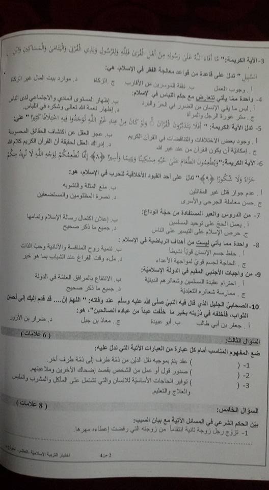 بالصور وكالة :نماذج الاختبارات النهائية لمواد الصف العاشر الفصل الثاني لسنوات سابقة