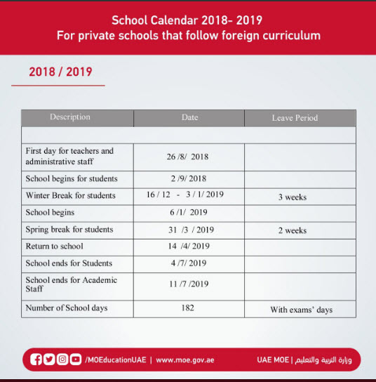 Academic staff work starts in private schools that follow the foreign curriculum for new academic year 2018-2019 on 26 August 2018 and for students on 2 September 2018.
