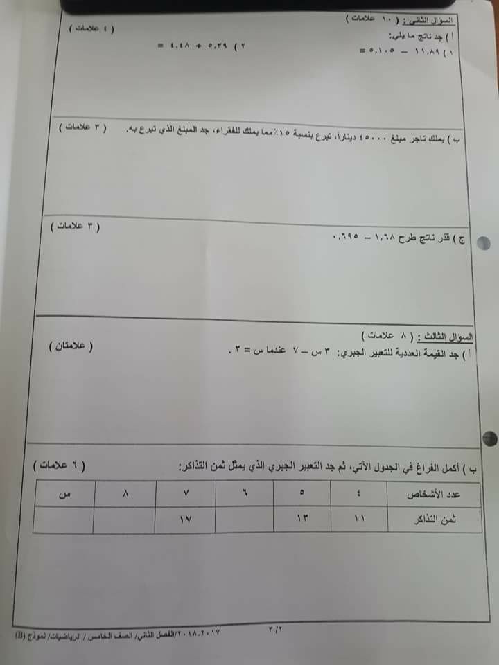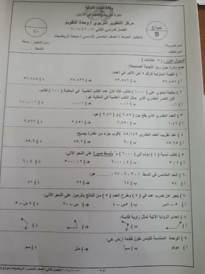 بالصور :. الاختبار النهائي -وكالة-B -لمادة اللغة العربية للصف الخامس الفصل الثاني