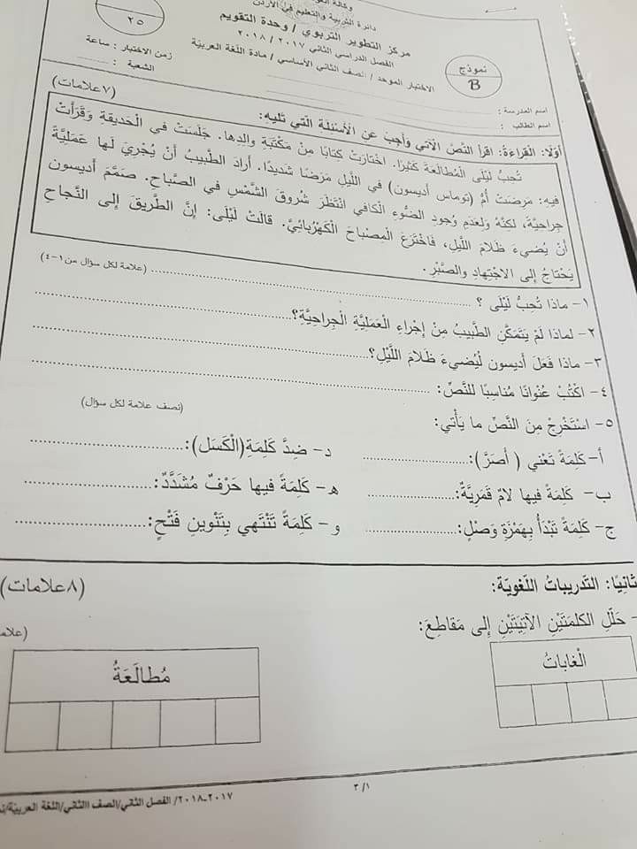 نموذج - 6 - وكالة نموذج B الاختبار النهائي لمادة اللغة العربية للصف الثاني الفصل الثاني أهلا وسهلا بكم زوارنا :) زوار :. موقع ومنتديات صقر الجنوب التعليمية :) نتمنى لكم كل المتعة والفائدة في موقعنا ;) -------------------------- ⬇️⬇️⬇️⬇️...