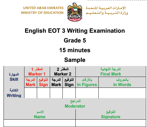 نموذج الامتحان الوزاري ( الكتابة ) لمادة اللغة الإنجليزية الصف الخامس الفصل الثالث