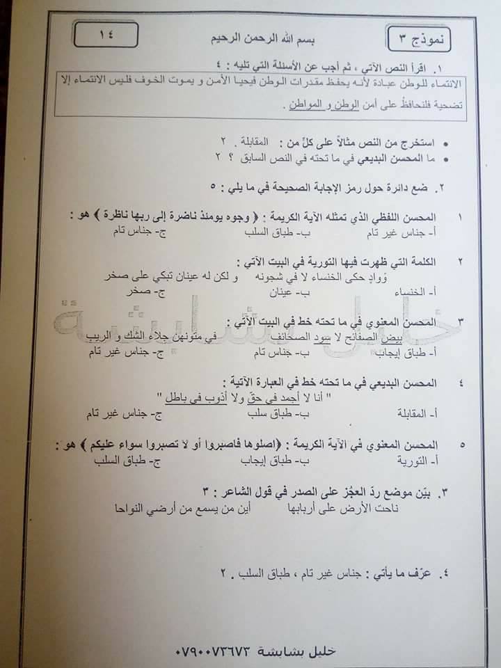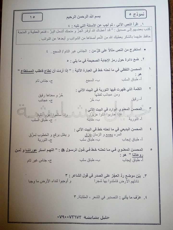 التوجيهي:مجموعة نماذج امتحانات مع الإجابة النموذجية "تخصص -البلاغة " للفرع الأدبي الفصل الثاني للدو