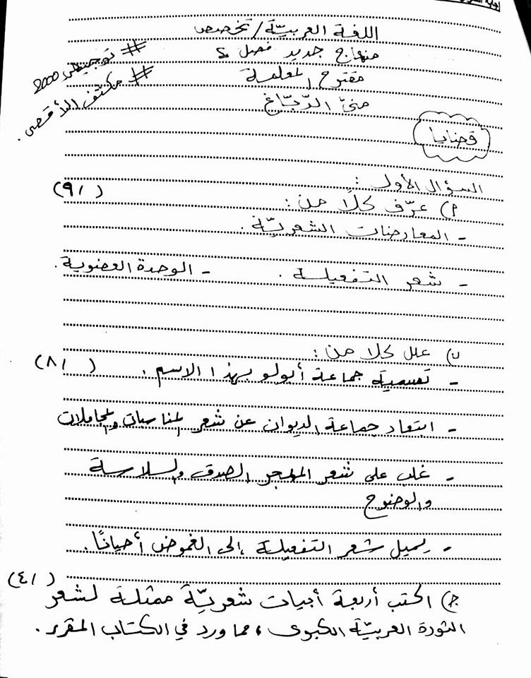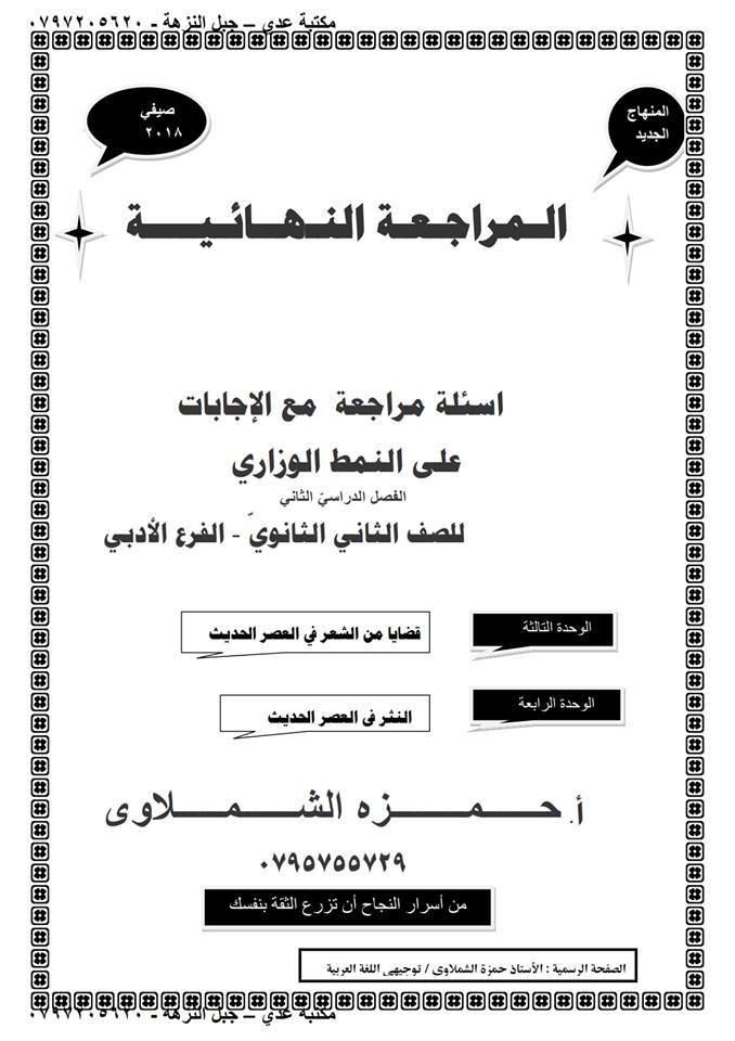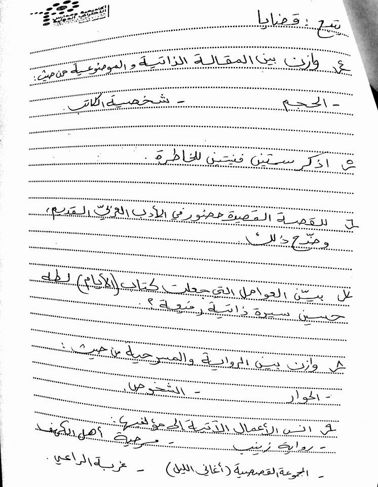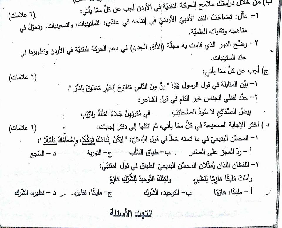 التوجيهي:اختبار شامل لمادة التخصص منهاج جديد الفصل الثاني أسئلة مقترحة للنحو والقضايا والنقد والبلا