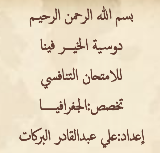 دوسية الخير فينا لمادة الجغرافيا للتقدم لإمتحانات التعليم الإضافي للعام الدراسي 2018-2019