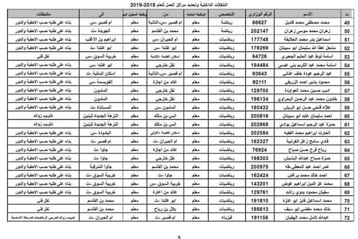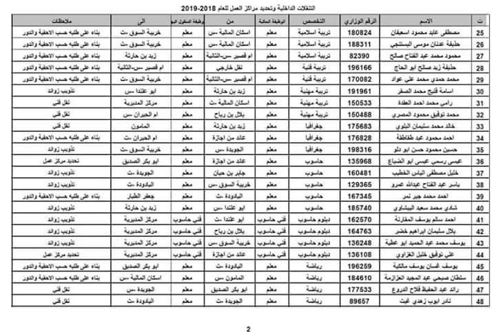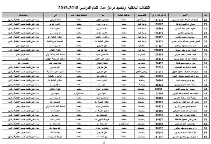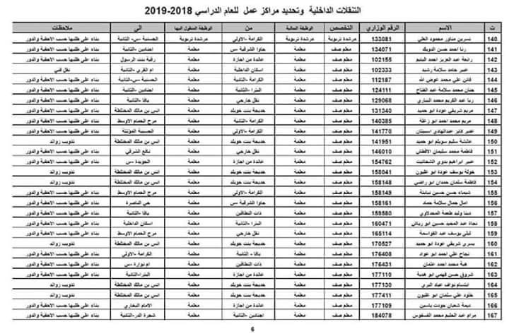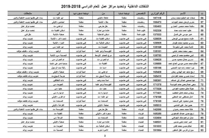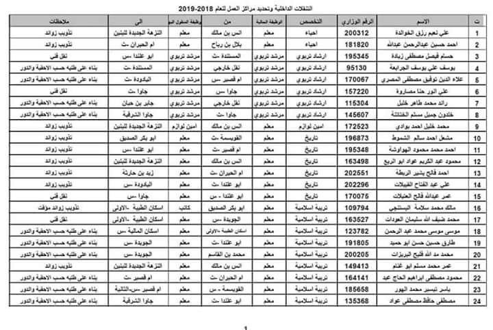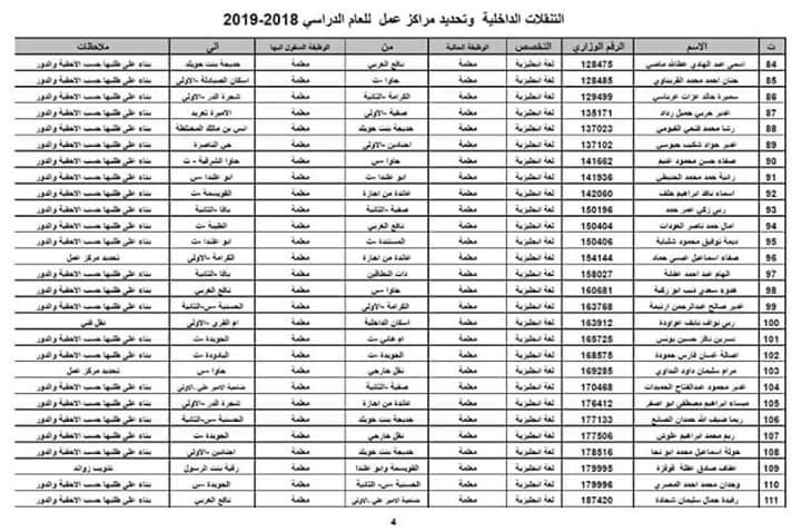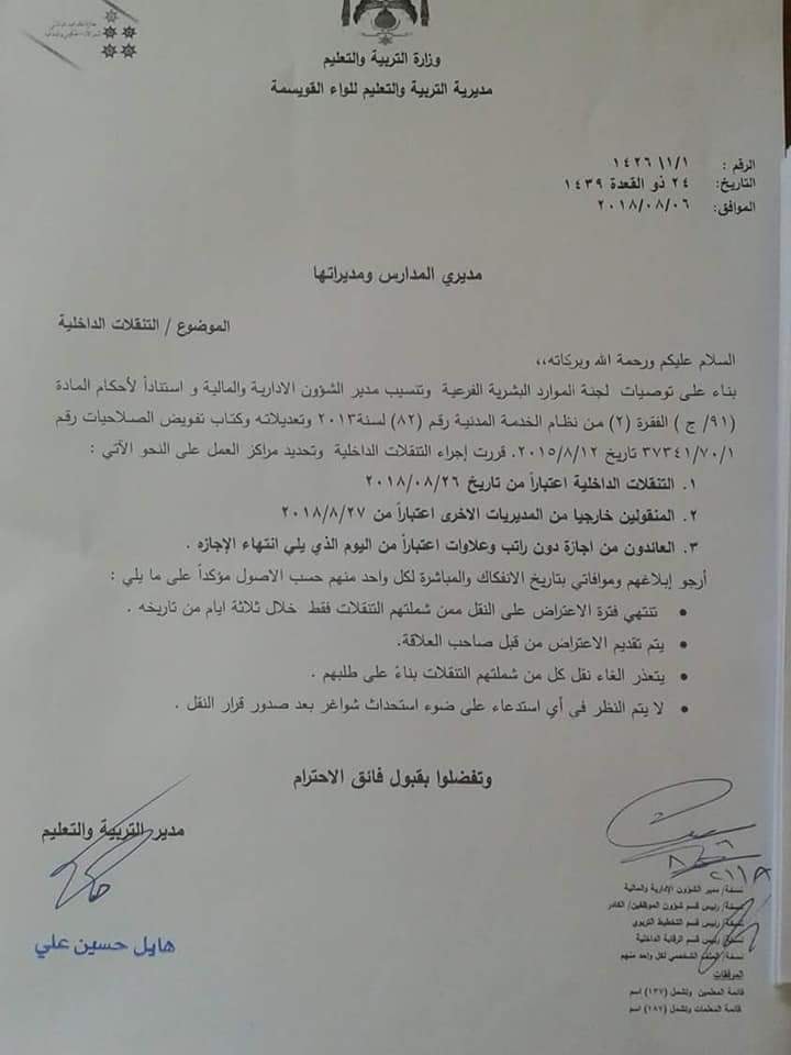 صدور التنقلات الداخلية مديرية تربية لواء القويسمة 2018-2019
