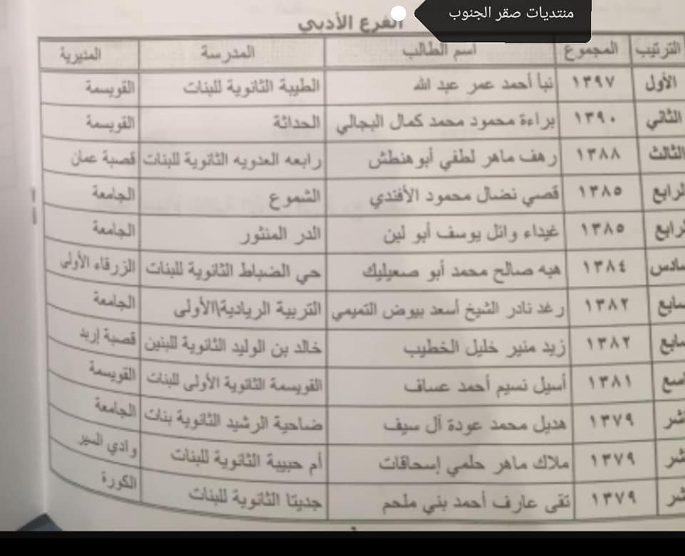 عاجل .. بالأسماء تعرف على أوائل الطلبة الناجحين في "التوجيهي" على مستوى المملكة ومعدلاتهم الدورة الصيفية 2018