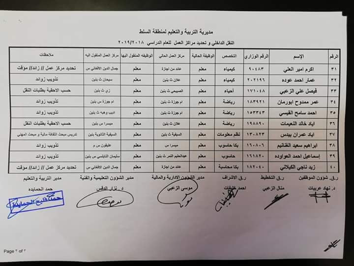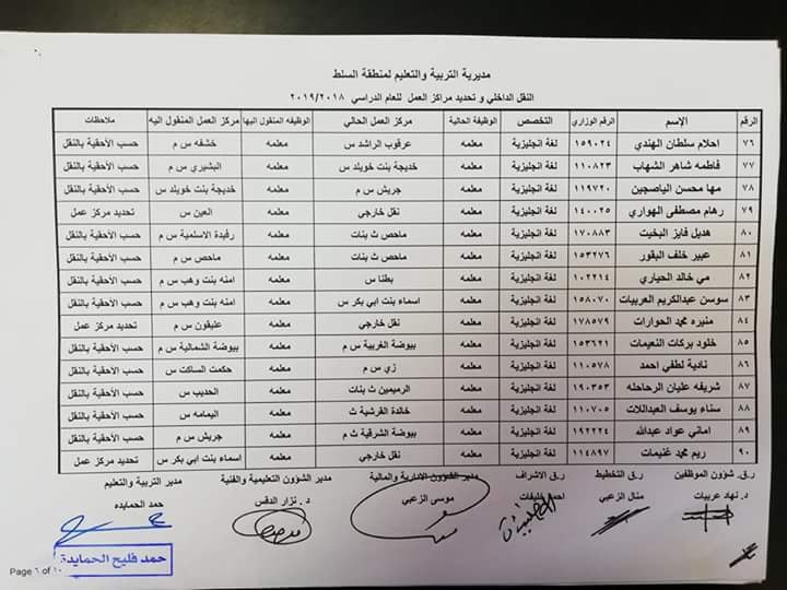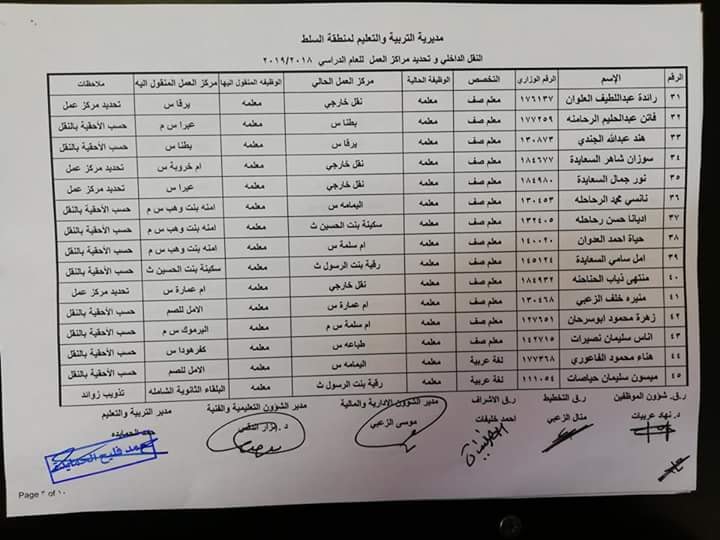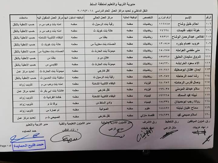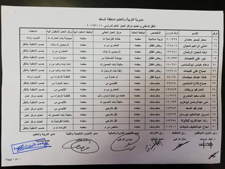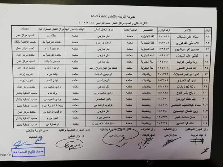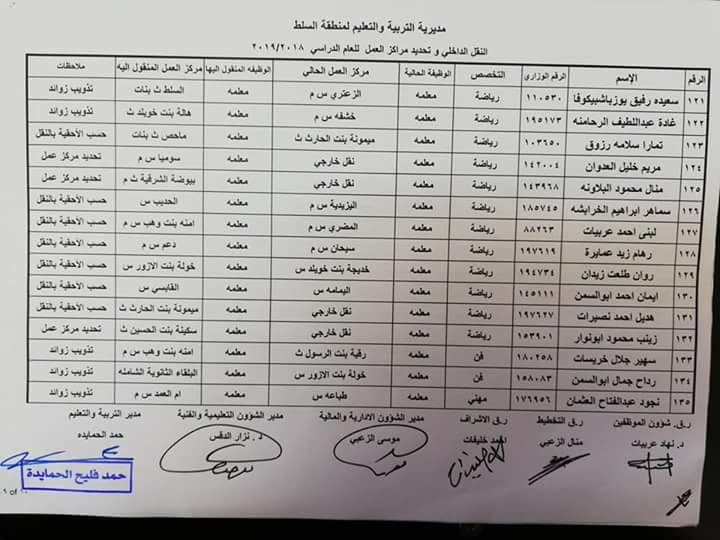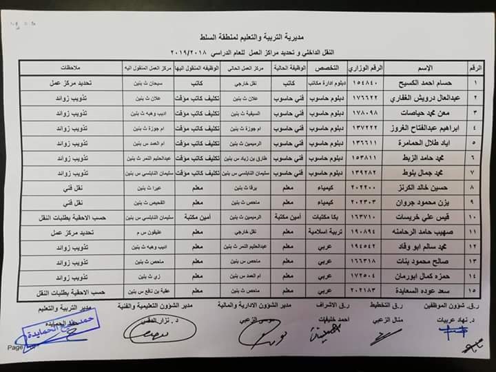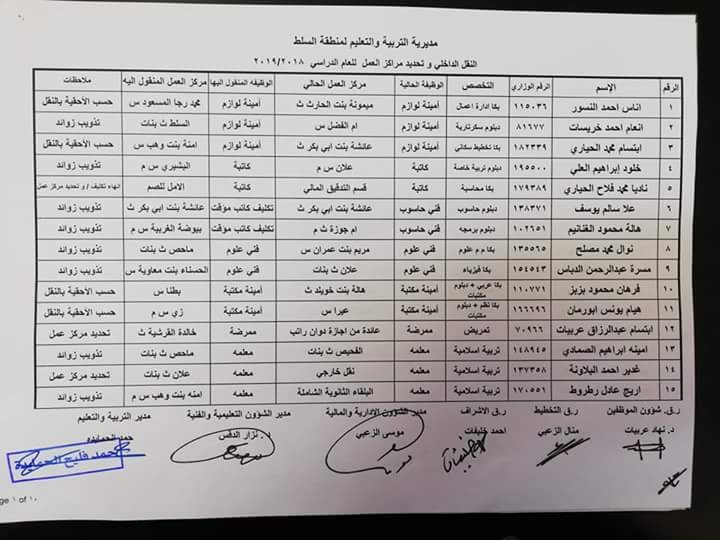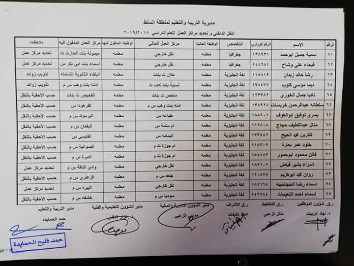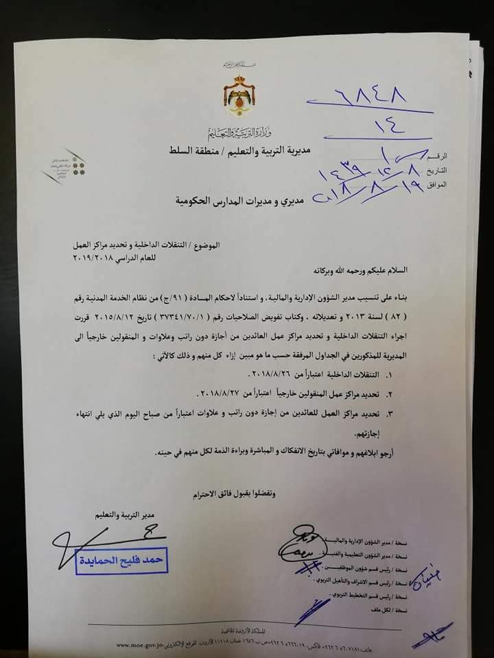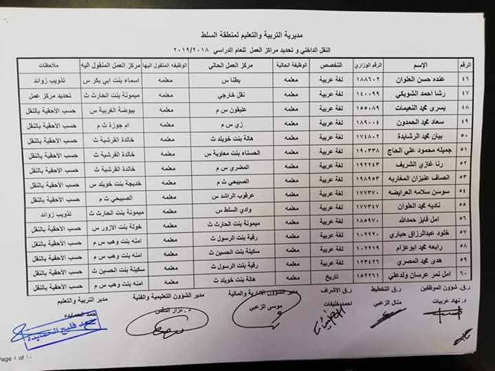 بالصور :. التنقلات الداخلية في مديرية تربية ( السلط ) طالع الاسماء