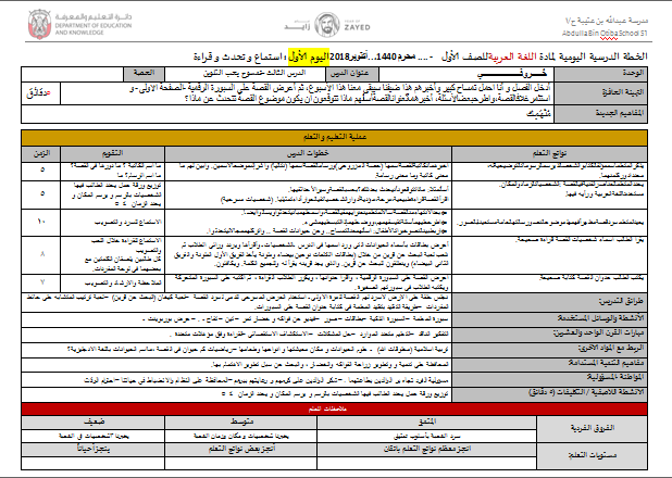 نموذج Word قابل للتعديل التحضير اليومي لمادة اللغة العربية (حرف الثاء) للصف الأول الفصل الاول