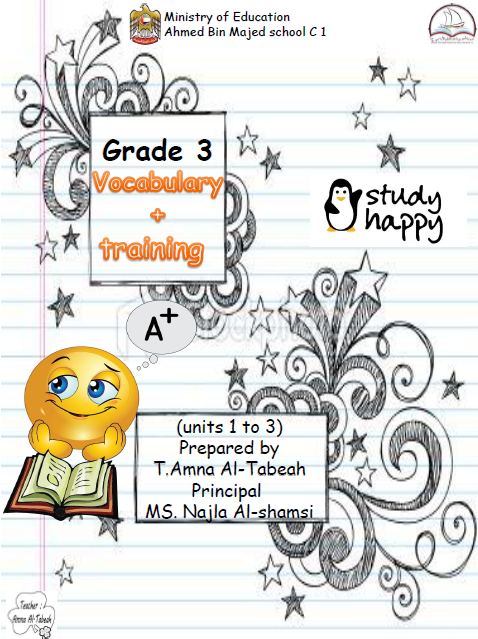 اللغة الإنجليزية أوراق عمل ( Vocabulary & Training Unit 1 to 3) للصف الثالث الفصل الاول