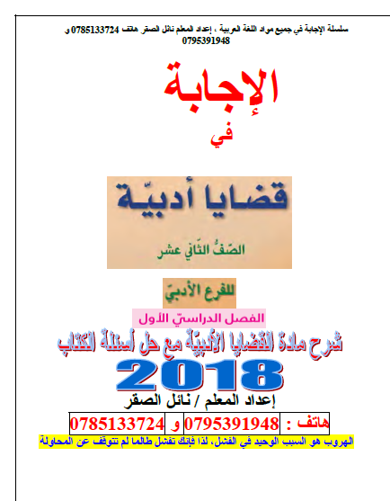 التوجيهي : دوسية قضايا أدبية لمادة تخصص اللغة العربية للفرع الأدبي 2018