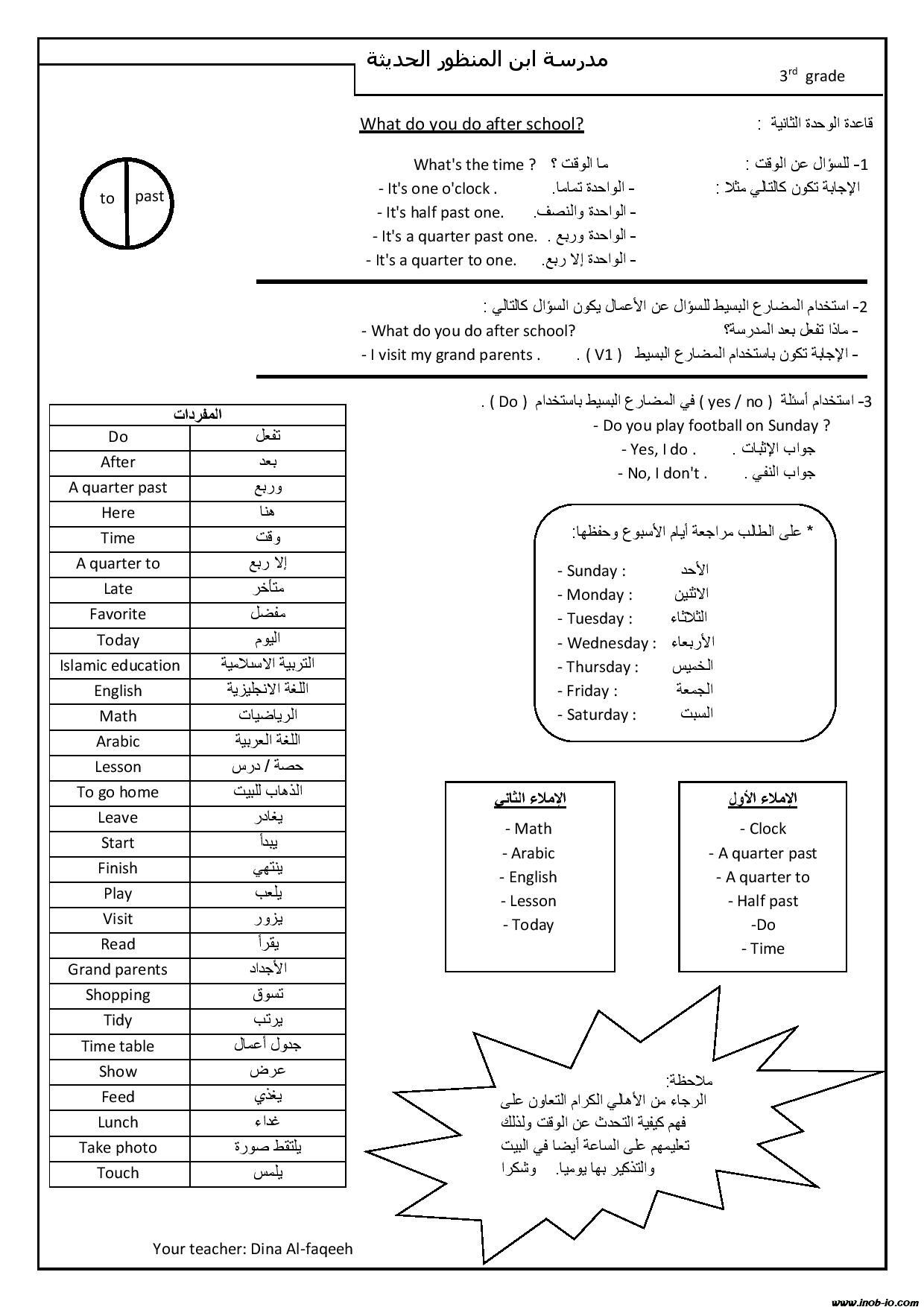 ملخص الوحدة الثانية لمادة اللغة الإنجليزية للصف الثالث الفصل الأول