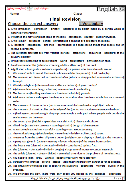 أوراق عمل مادة اللغه الأنجليزيه الصف الحادي عشر المتقدم الفصل الأول المنهاج القطري