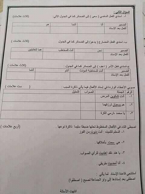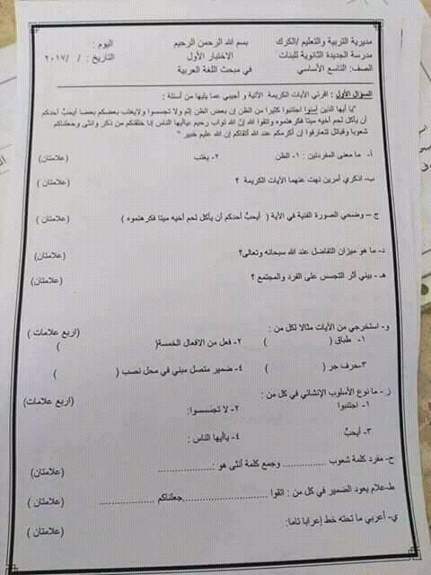 نموذج -6- بالصور امتحان الشهر الأول لمادة اللغة العربية للصف التاسع الفصل الأول