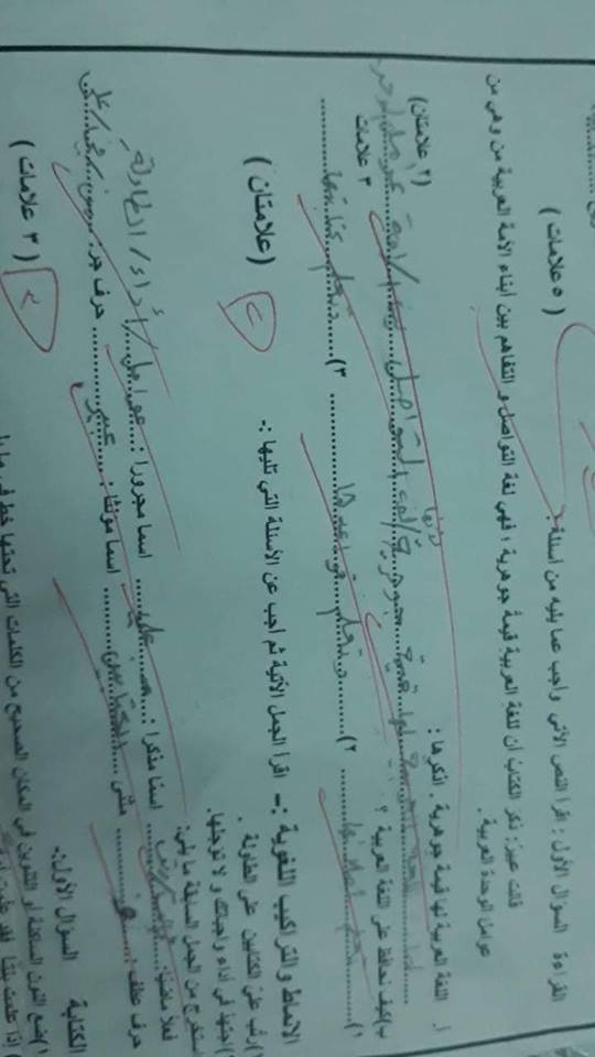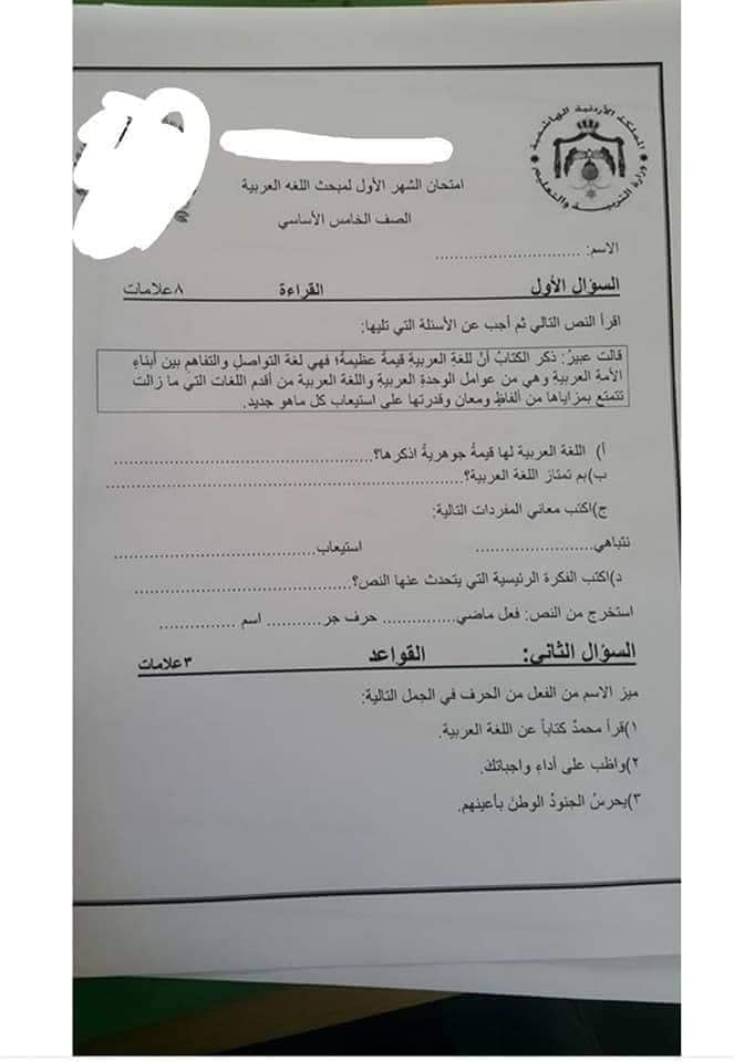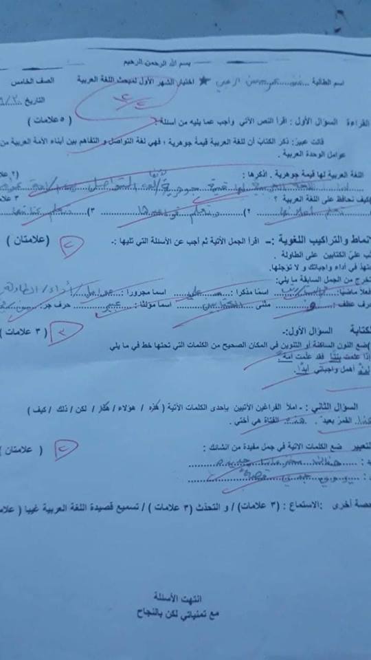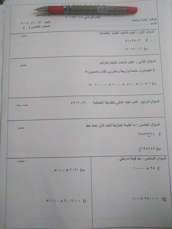 سنوات سابقة :. بالصور نماذج الشهر الأول عربي ورياضيات للصف الخامس الفصل الأول