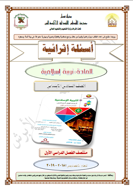 تدريبات اثرائيه لمادة التربيه الأسلاميه الصف السادس الأبتدائي الفصل الأول المنهاج القطري 2018 - 2019
