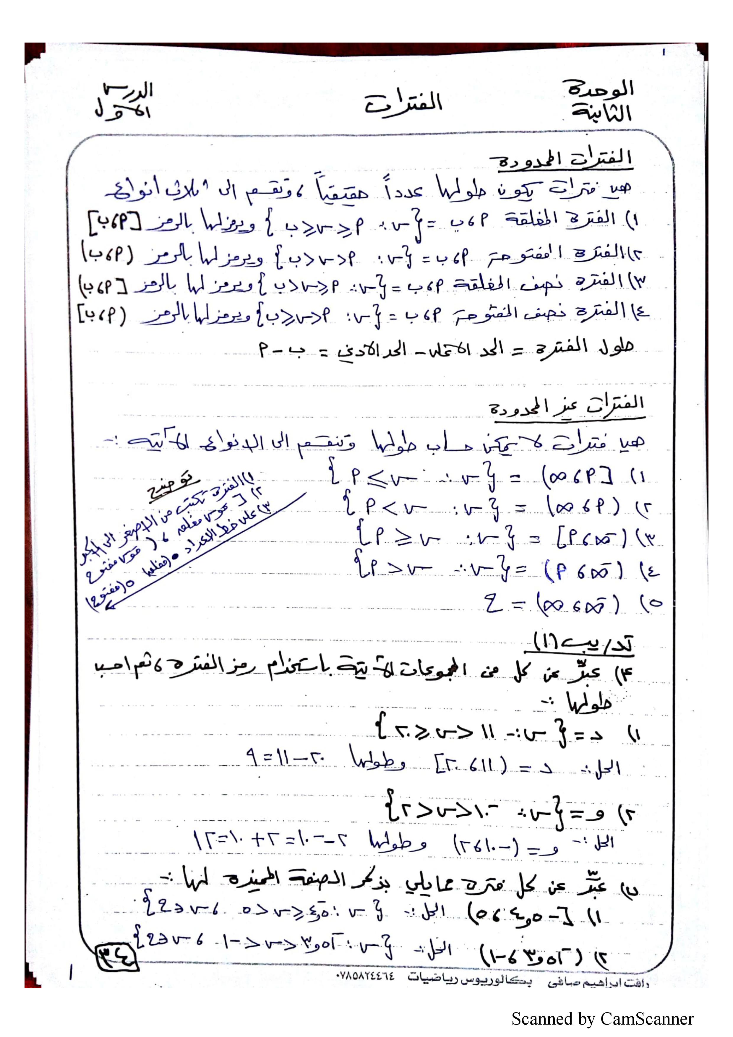 ملف PDF :. شرح للوحدة الثانية للرياضيات للصف التاسع مع حل جميع اسئلة الوحدة واوراق عمل الفصل الأول 2