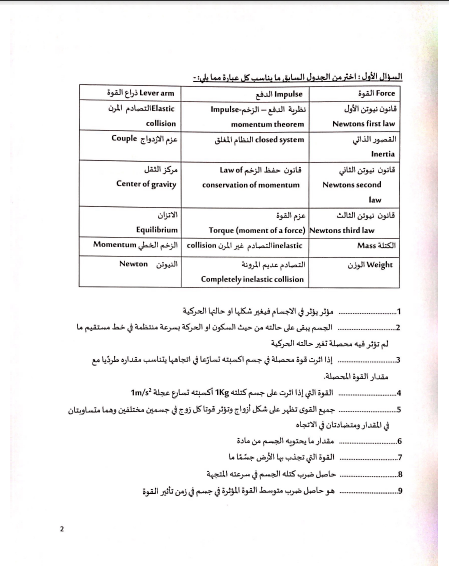 اوراق عمل لمادة الفيزياء الصف الحادي عشر تأسيسي الفصل الأول المنهاج القطري 2018 - 2019