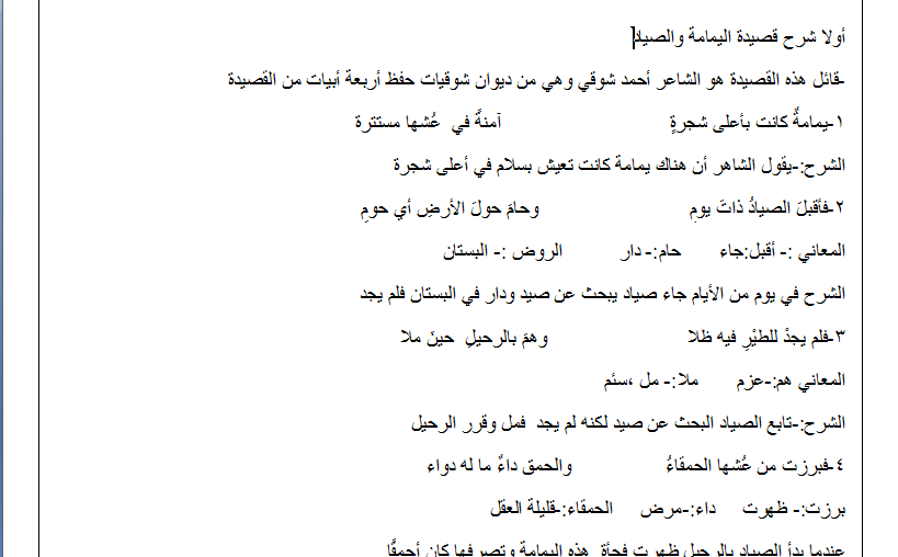 PDF شرح درس اليمامة والصياد لمادة اللغة العربية للصف الخامس الفصل الأول