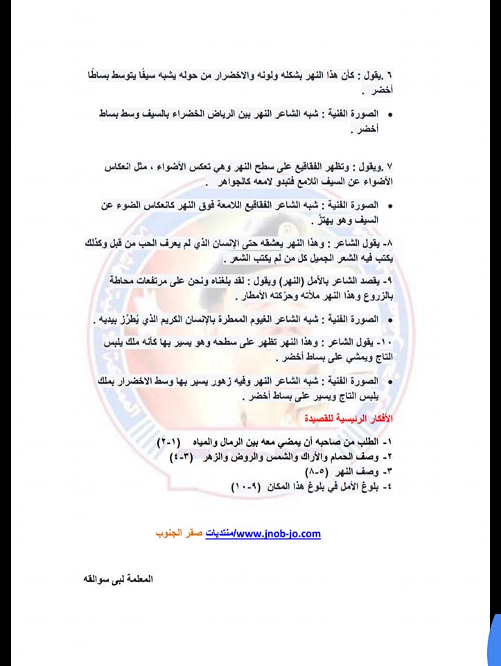شرح قصيدة من في وصف نهر للشاعر ابن مرج الكحل لمادة اللغة العربية الصف الثامن الفصل الاول او التحميل من المرفقات