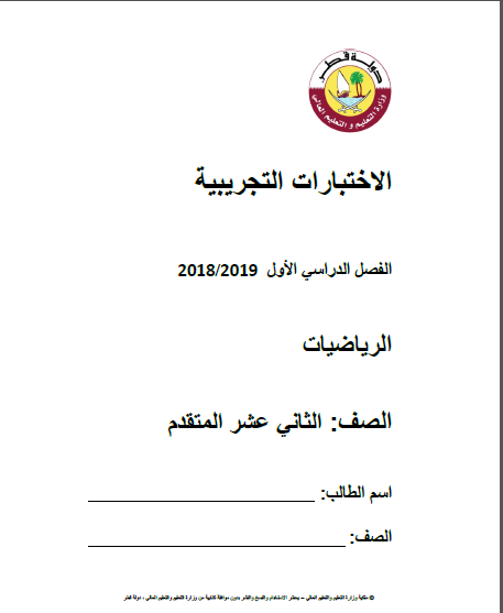 أختبار تجريبي نهاية الفصل لمادة الرياضيات الصف الثاني عشر متقدم الفصل الأول المنهاج القطري 2018 - 2019
