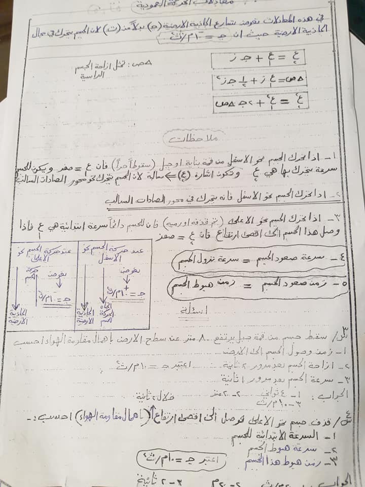 بالصور ورقة عمل الفصل الثاني الحركة عن معادلات الحركة الخطية ومعادلات الحركة العمودية لمادة الفيزياء