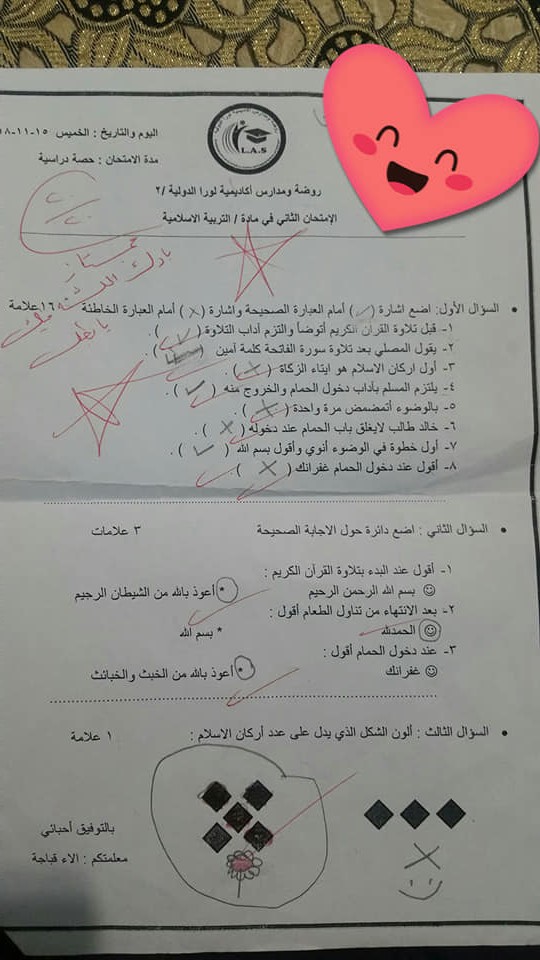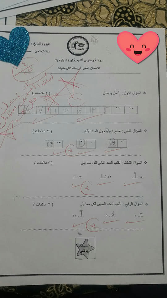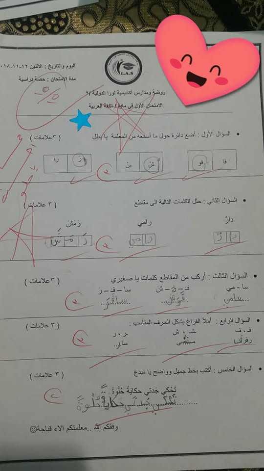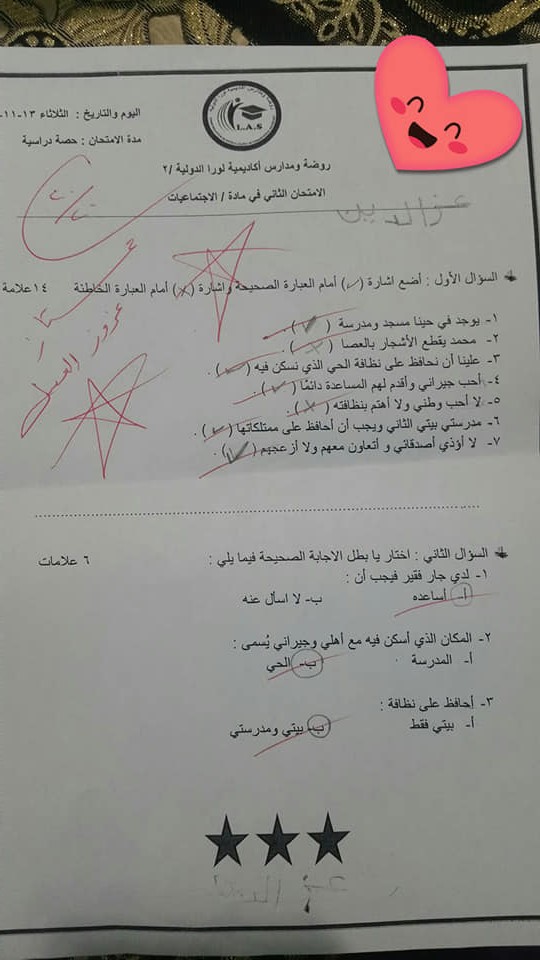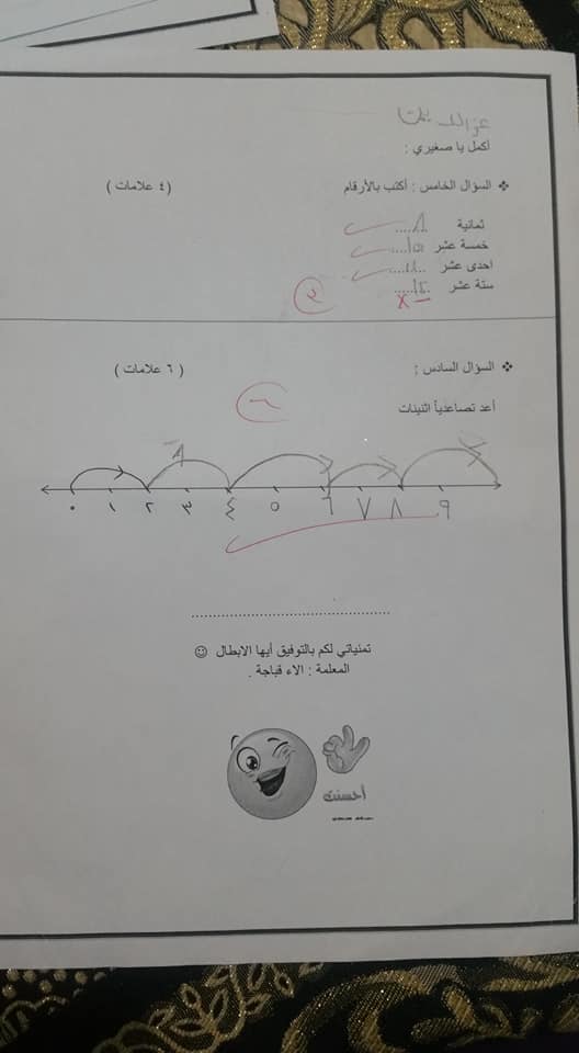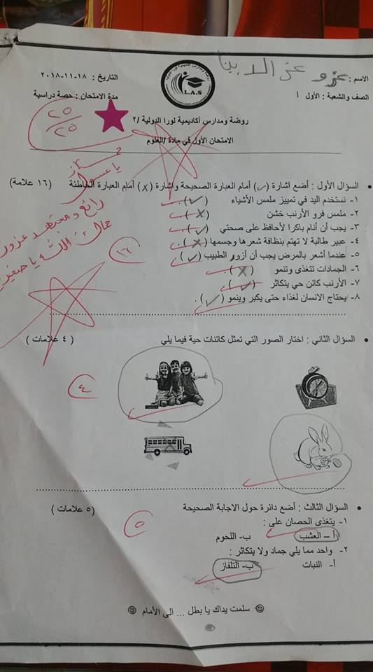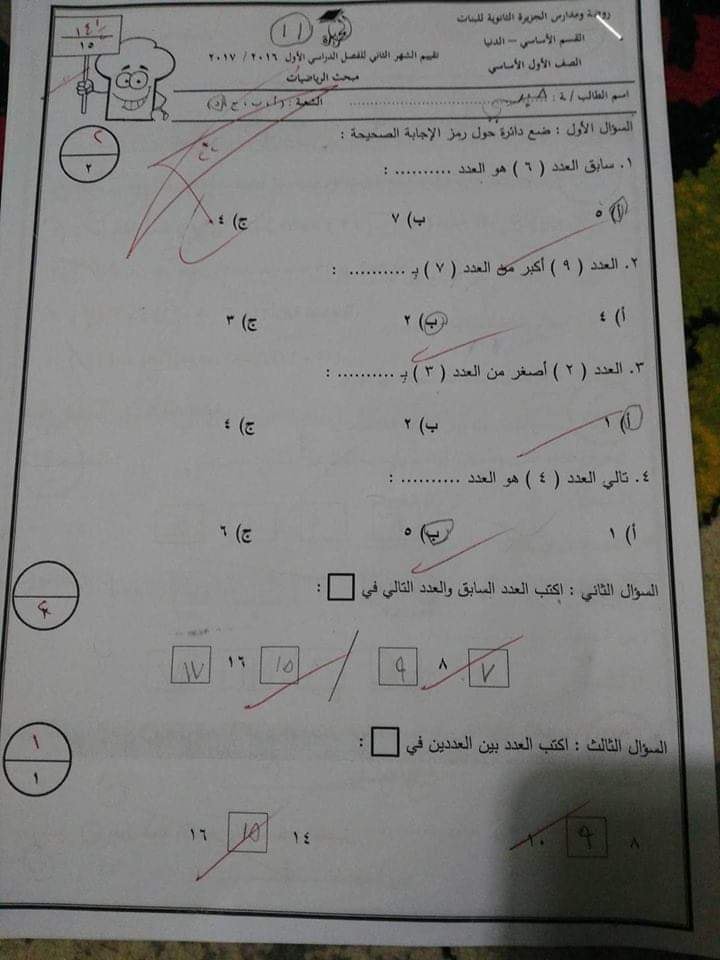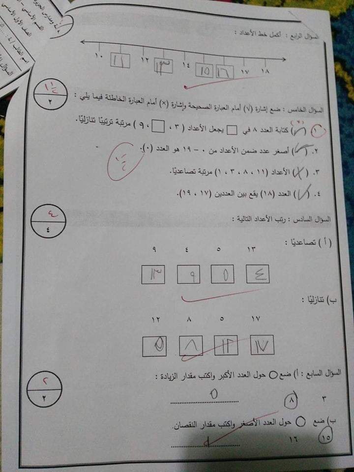 بالصور :. نماذج لاختبارات الشهر الثاني (عربي - رياضيات - دين - اجتماعيات-علوم) للصف الأول الفصل الأو