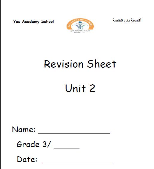 Revision Sheet unit 2 لمادة اللغة الانجليزية الصف الثالث الفصل الاول