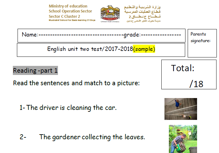 English unit two test (sample) لتحميل الملف PDF اضغط هنا وتابع