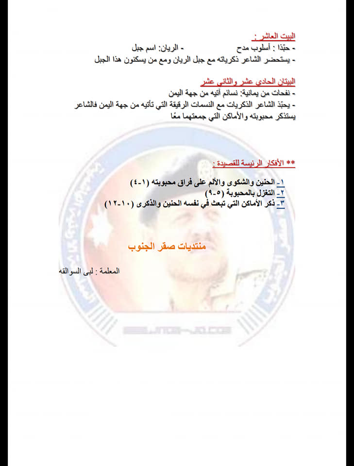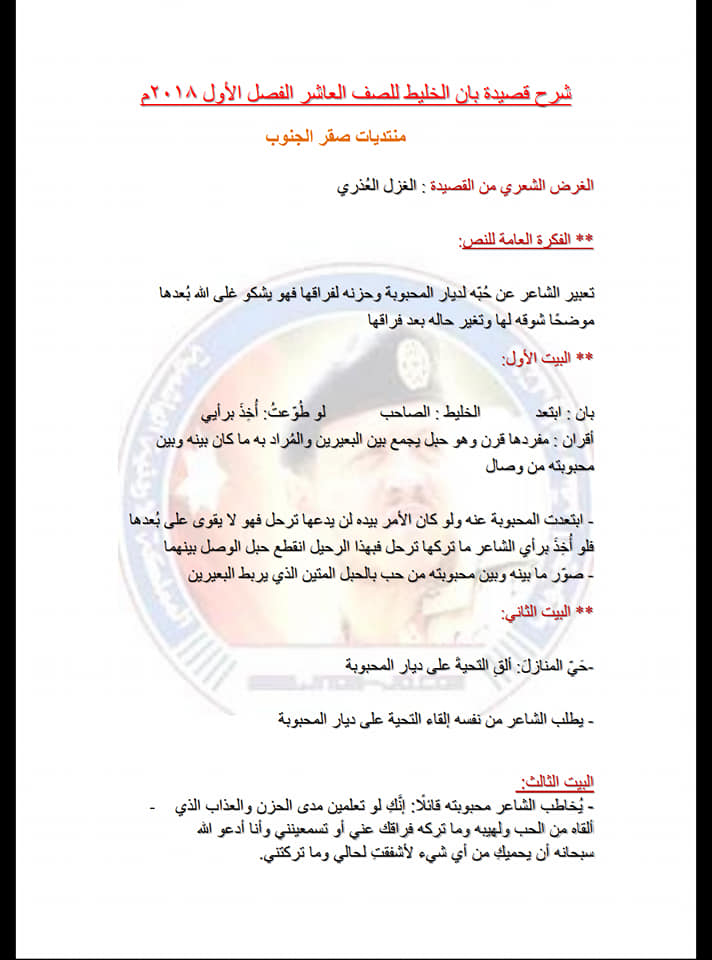 بالصور :. شرح قصيدة بان الخليط لمادة اللغة العربية الصف العاشر الفصل الأول 2018 المعلمة : لبى السوالقه