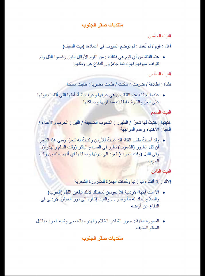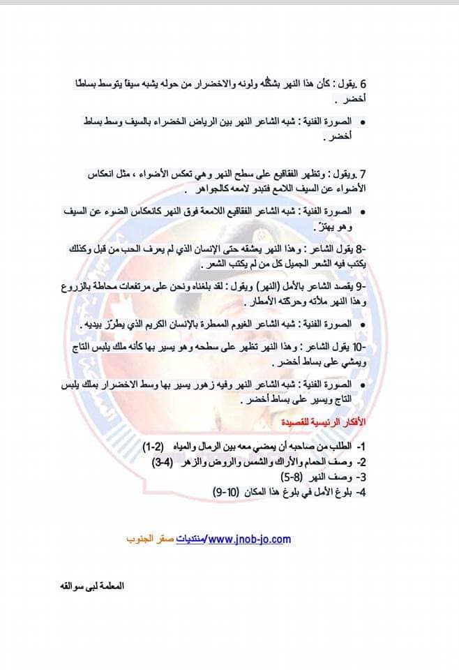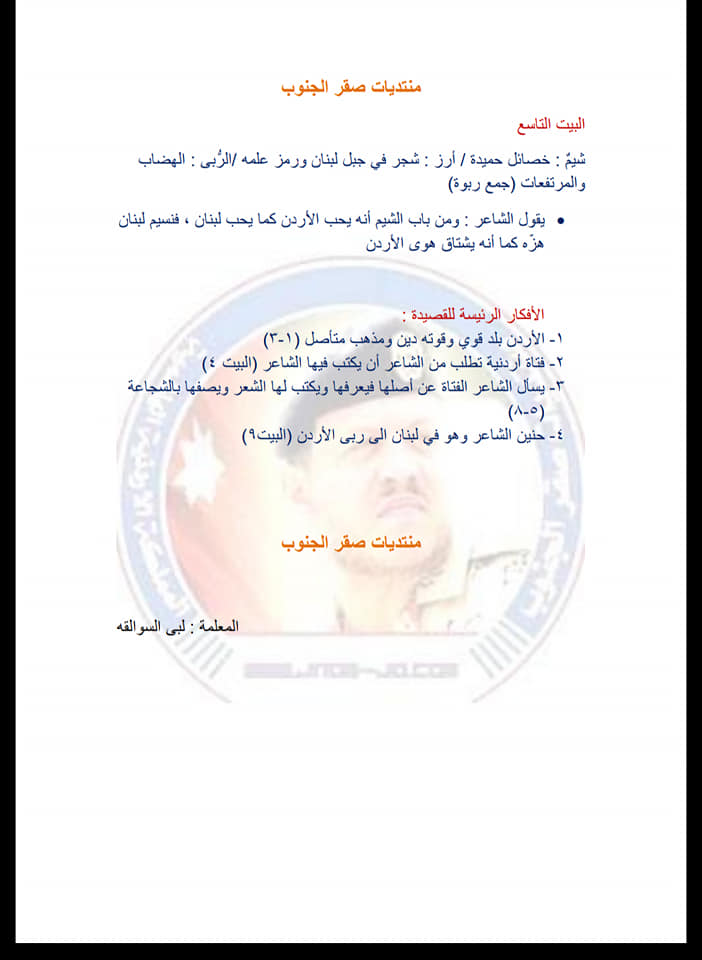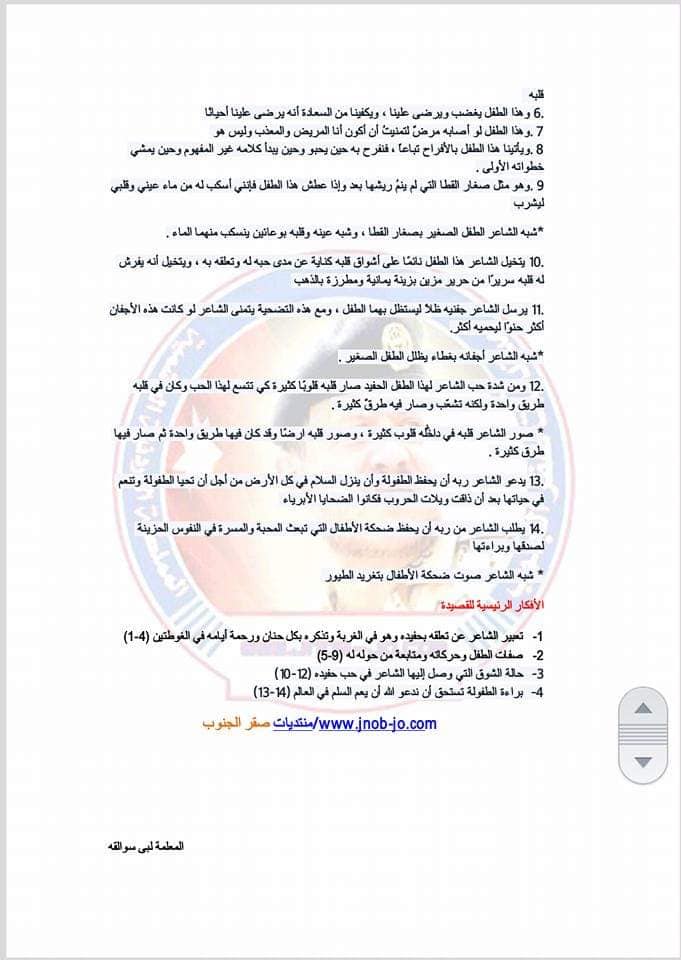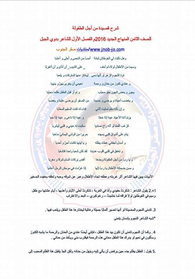بالصور شرح جميع قصائد الصف الثامن لمادة اللغة العربية _من أجل الطفولة _ في وصف نهر _أردن أرض العزلم للفصل ااول 2018
