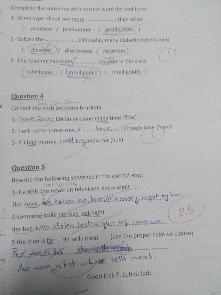 نموذج للاختبار النهائي لمادة اللغة الإنجليزية للصف الأول ثانوي الفصل الأول