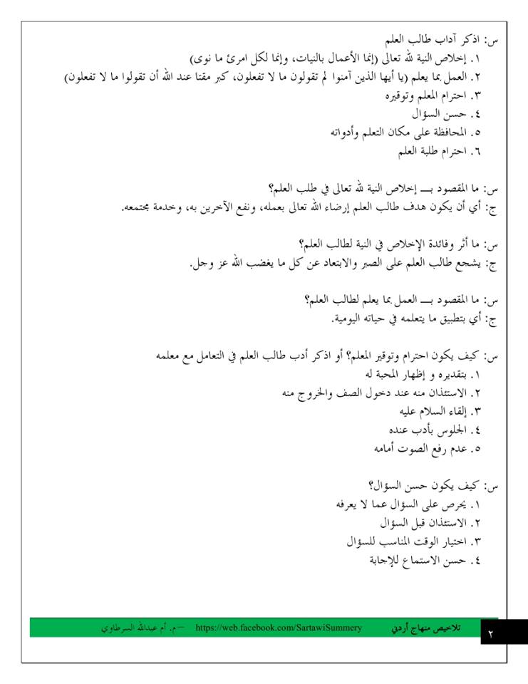 ملف PDF يحتوي على اكثر من 19 صفحة تلخيص شامل {سؤال وجواب } لمادة التربية الاسلامية الصف الرابع الفصل الاول 2019 التحميل المجاني لكم من هنا