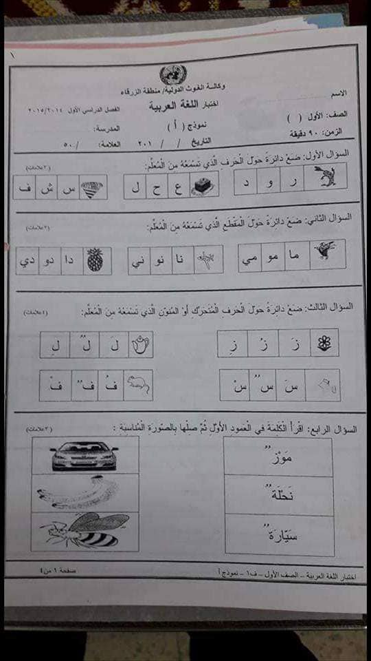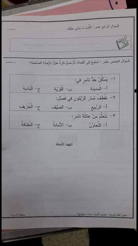 في ملف واحد نماذج امتحان مادة اللغة العربية النهائي من الصف الاول ولغاية الصف التاسع الفصل الاول 2018