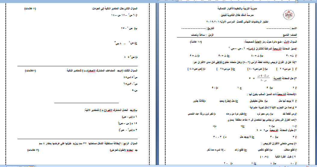 ه همسآت شرقية طاقم الادارة إنضم 1 فبراير 2013 المشاركات 17,282 مستوى التفاعل 362 النقاط 63 الإقامة المفرق 27 ديسمبر 2018 #1 التحميل المجاني لكم من هنا نم المرفقات امتحان تاسع فصل اول جديد.zip 113.9 KB · المشاهدات: 57