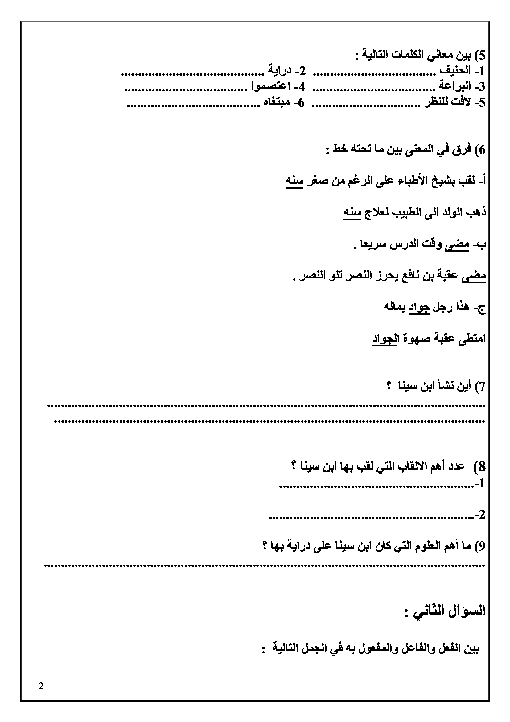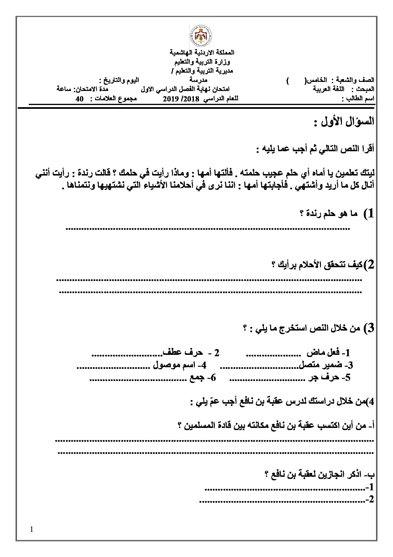 Word نموذج -6- Word قابل للتعديل الاختبار النهائي لمادة اللغة العربية الصف الخامس الفصل الاول