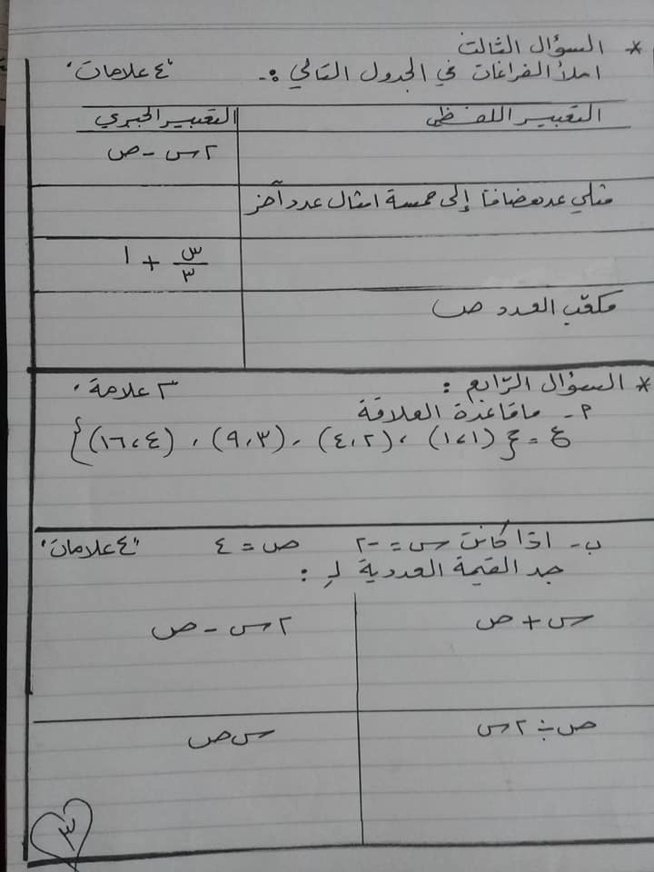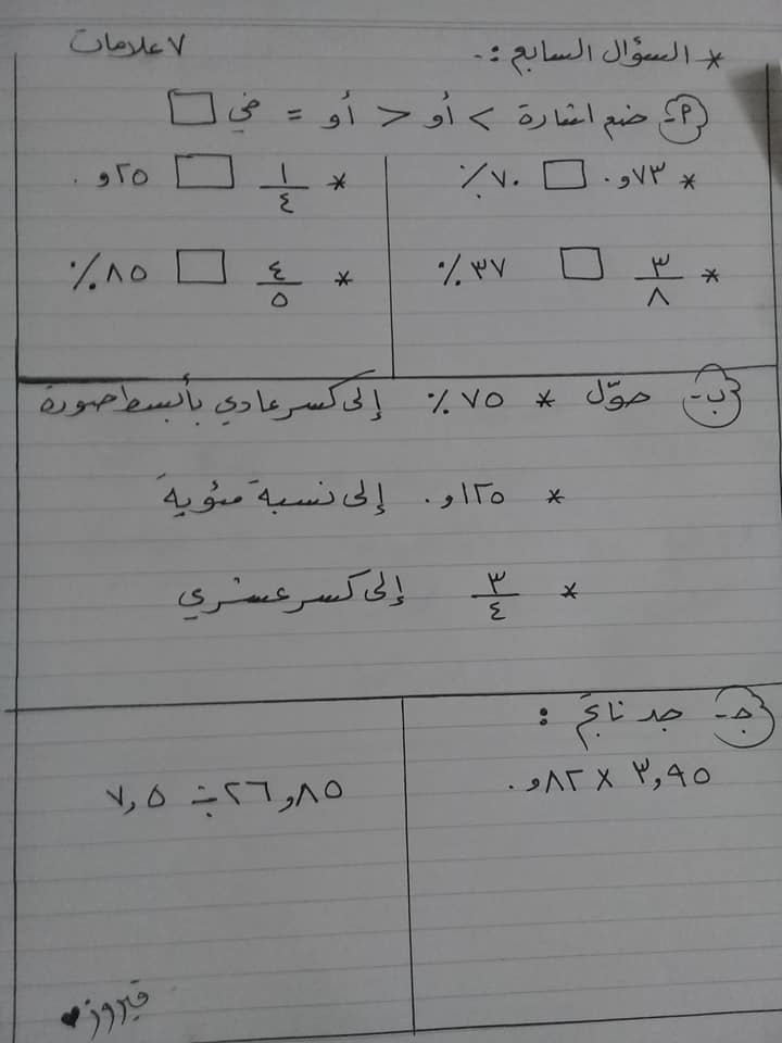نموذج للاختبار النهائي لمادة الرياضيات للصف السادس الفصل الأول
