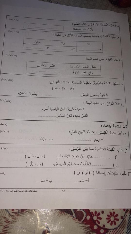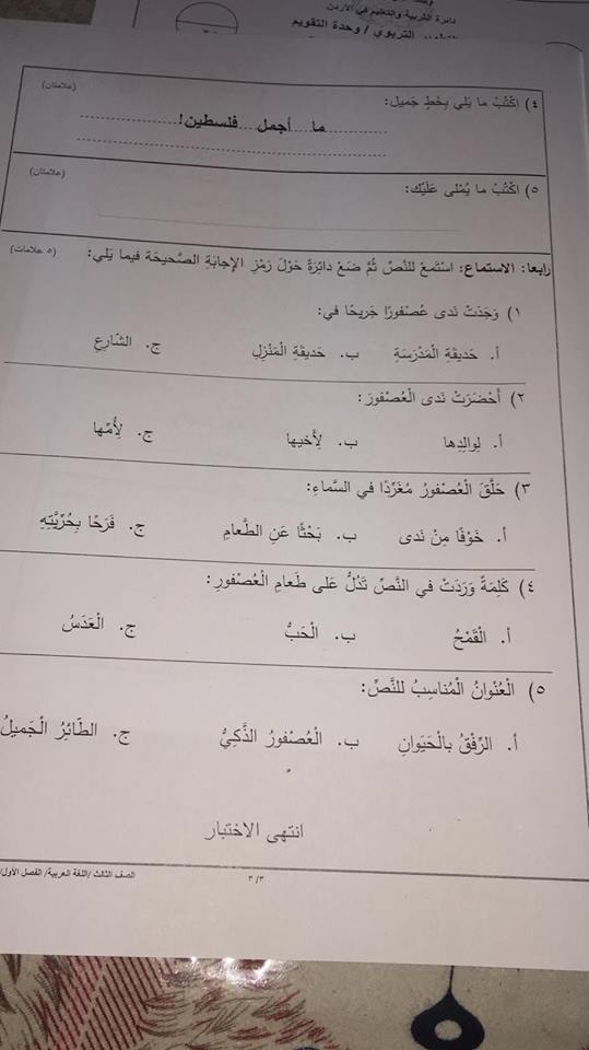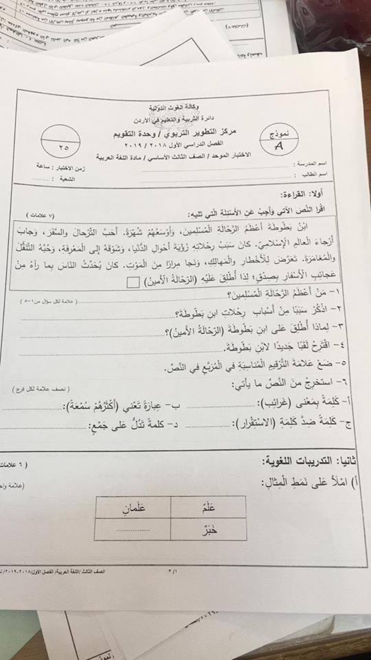 مصور :. وكالة : الاختبار النهائي لمادة اللغة العربية للصف الثالث الفصل الأول