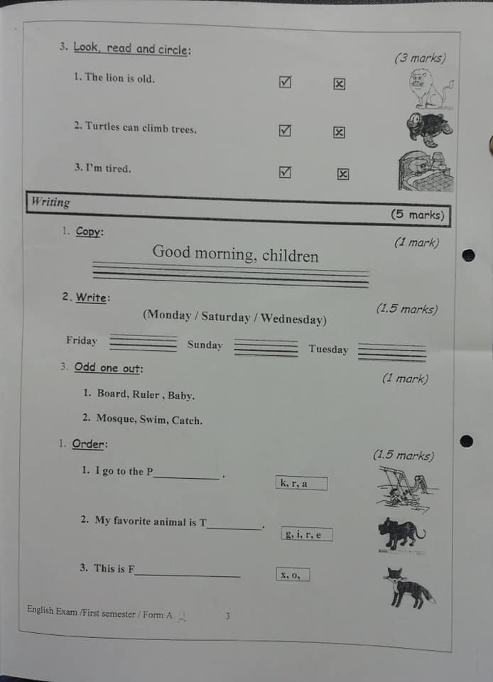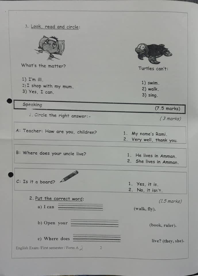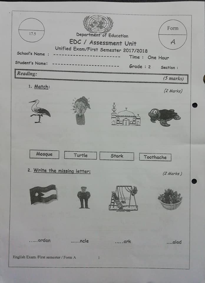 صور :. وكالة :نموذج الاختبار النهائي لمادة اللغة الإنجليزية للصف الثاني الفصل الأول