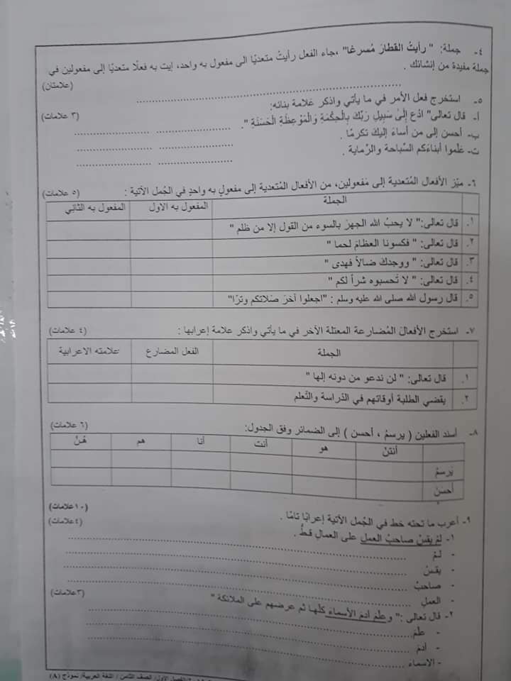 يالصور :. وكالة :الاختبار النهائي لمادة اللغة العربية للصف الثامن الفصل الأول \\
