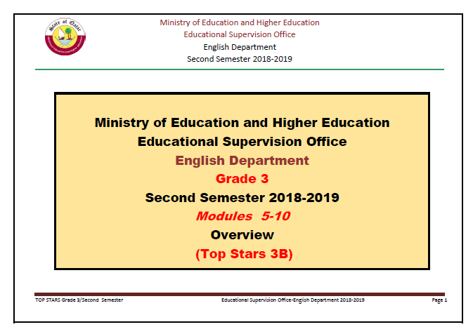 الخطه الفصليه لمادة اللغه الأنجليزيه الصف الثالث الأبتدائي الفصل الثاني