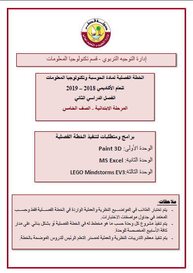 الخطة الفصلية لمادة الحوسبة وتكنولوجيا المعلومات الصف الخامس الابتدائي الفصل الثاني