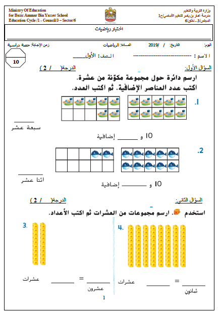 نموذج الاختبار الاول لمادة الرياضيات المتكاملة للصف الاول الفصل الثاني لتحميل الملف PDF اضغط هنا وتابع